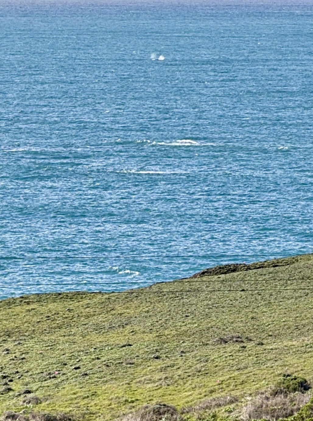 Photo of two gray whale blows at Hearn Gulch taken by Janet McElroy