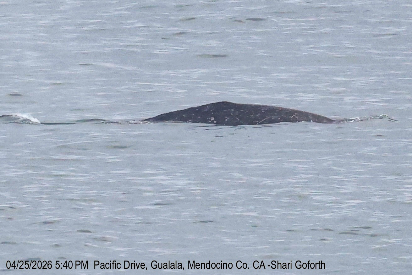 💠 1 gray whale foraging close to shore; may be the same forager we observed yesterday or it may be a new recruit